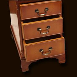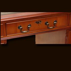 Superb locally made reproduction furniture line of Regency pedestal desks. A classic design but with the offer of choosing all aspects of design such as wood leather handles and layout. Please use the guide below for details of the various options to tailor the desk to your preferences. Bespoke size versions of this desk are available please ask.